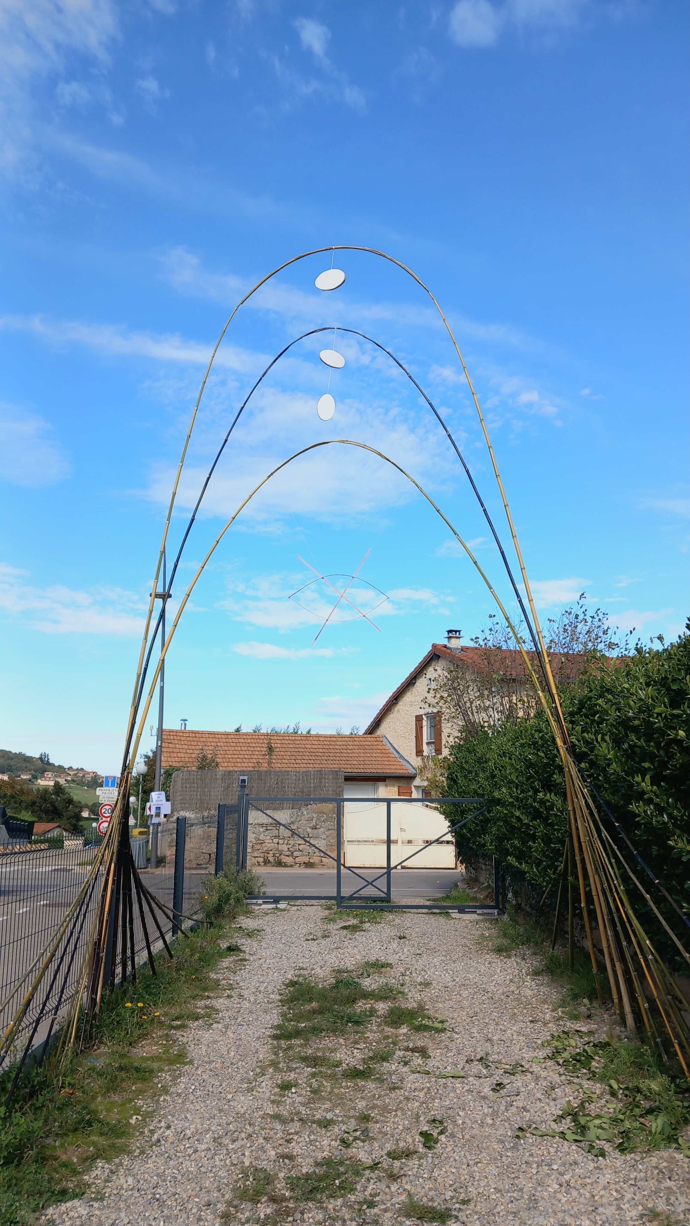 C’est un évènement art -nature intitulé Trait d’union : pour répondre à la fois à la volonté de la Municipalité d’unir par une voie agréable deux quartiers de Pollionnay et au thème de la Biennale de Lyon, l’ouverture à l’autre.