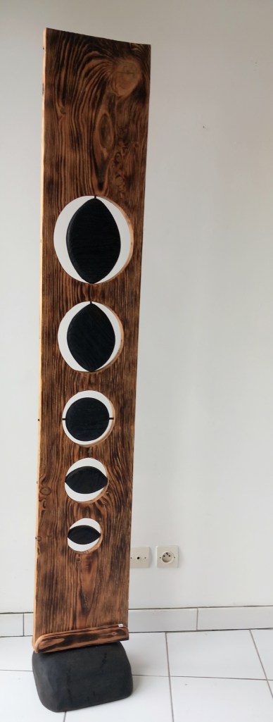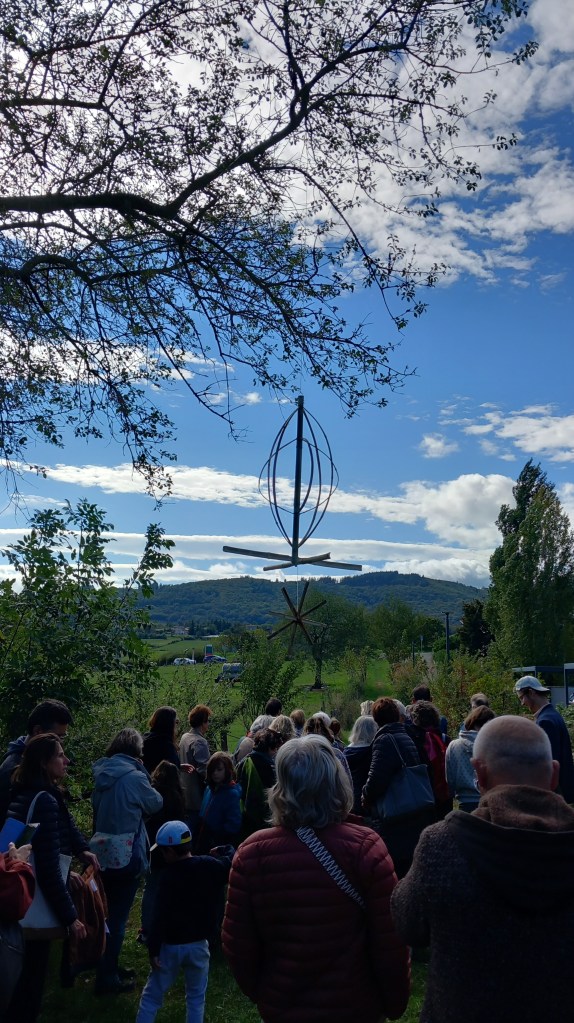 L’Artiste Marc Averly a ponctué ce chemin d’installations toutes aussi surprenantes les unes que les autres. C’est lui qui a conduit la promenade commentée qui s’est terminée à La Remise sur son exposition montrant un autre aspect de son œuvre.