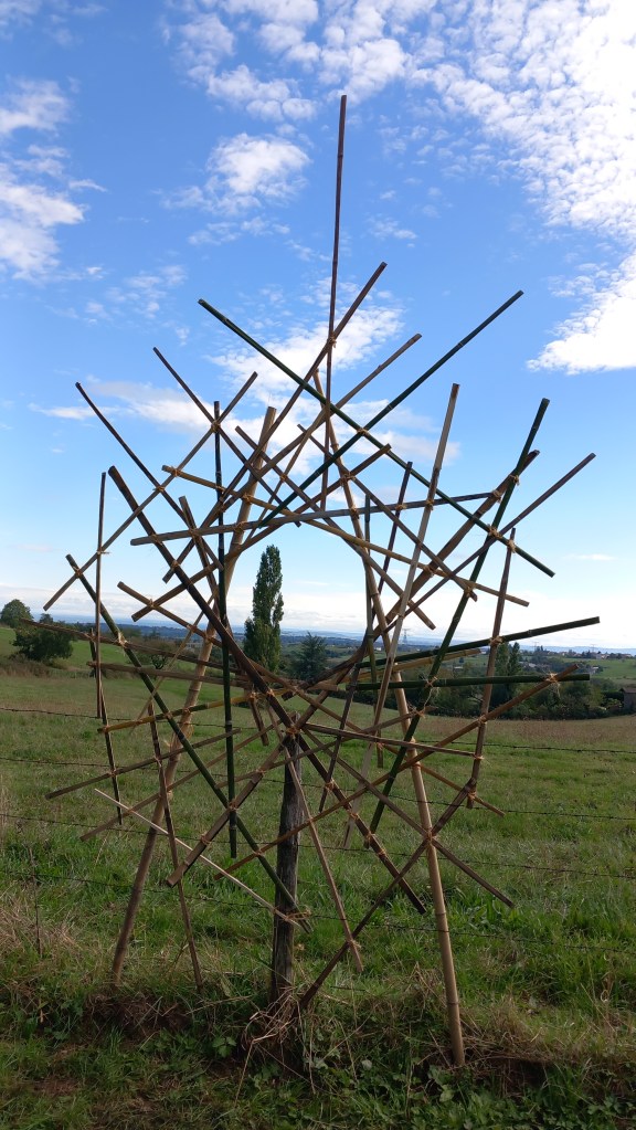 Cette réalisation de Marc Averly, sculpteur art-nature, s’est déroulée du 27 septembre au 6 octobre dans le cadre d’une résidence proposée par l’Association Geneviève Dumont. Une douzaine d’installations en éléments naturels ont été réalisées in situ et ponctuent ce sentier. Elles seront visibles au moins jusqu’au printemps.